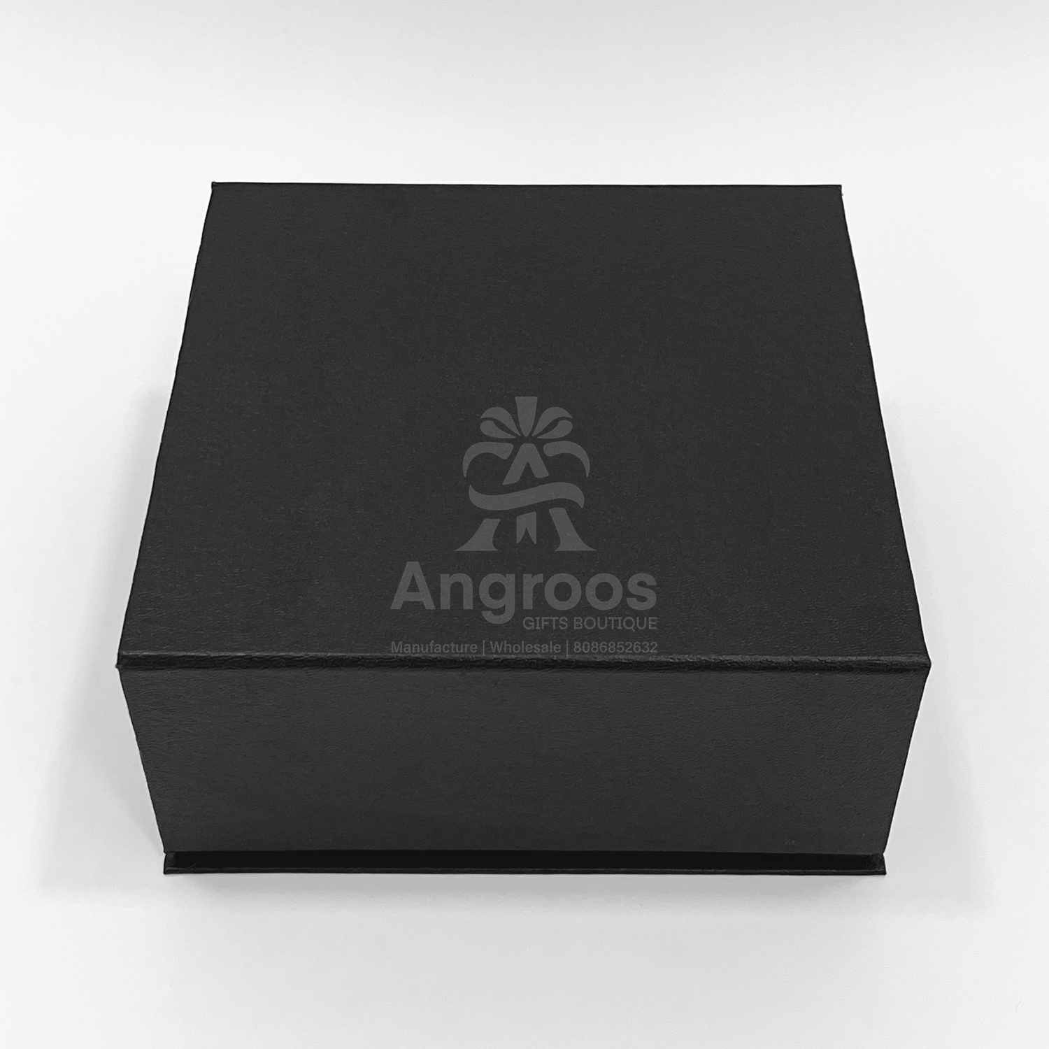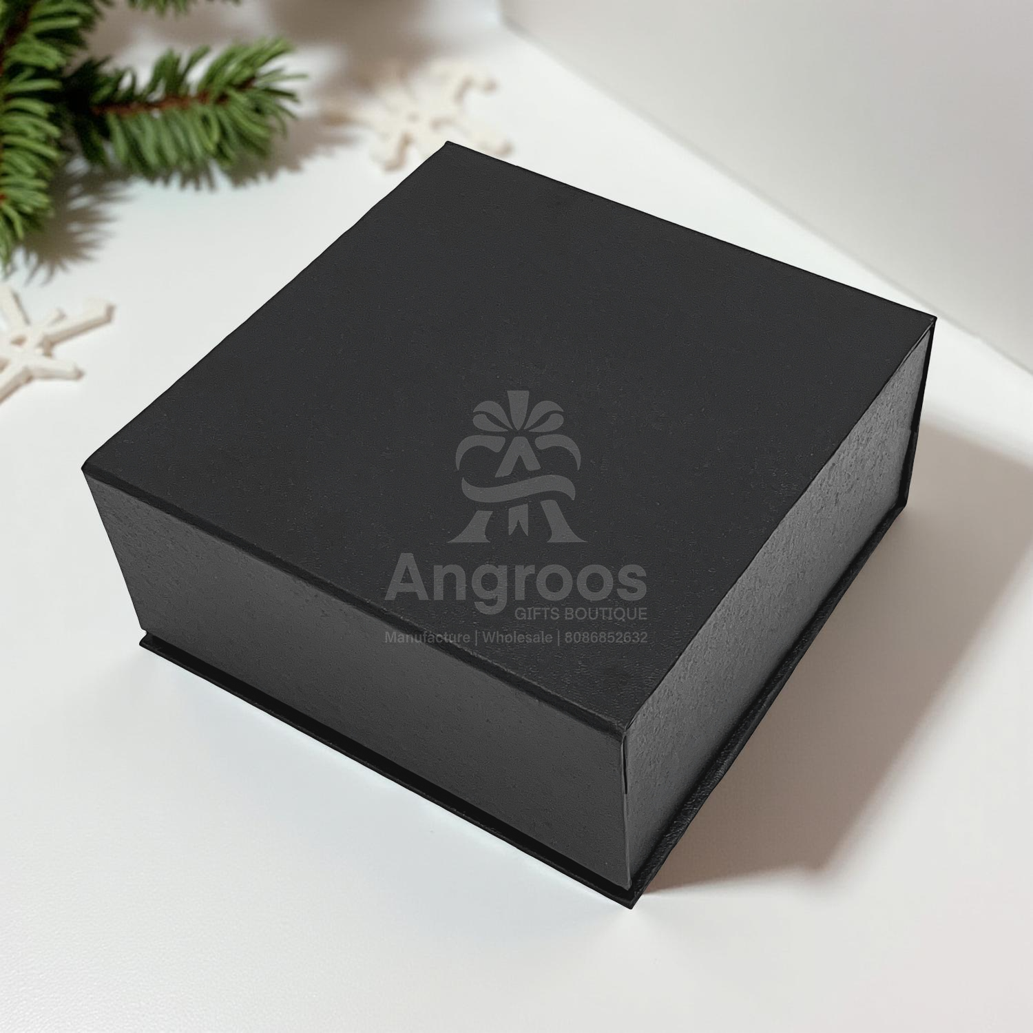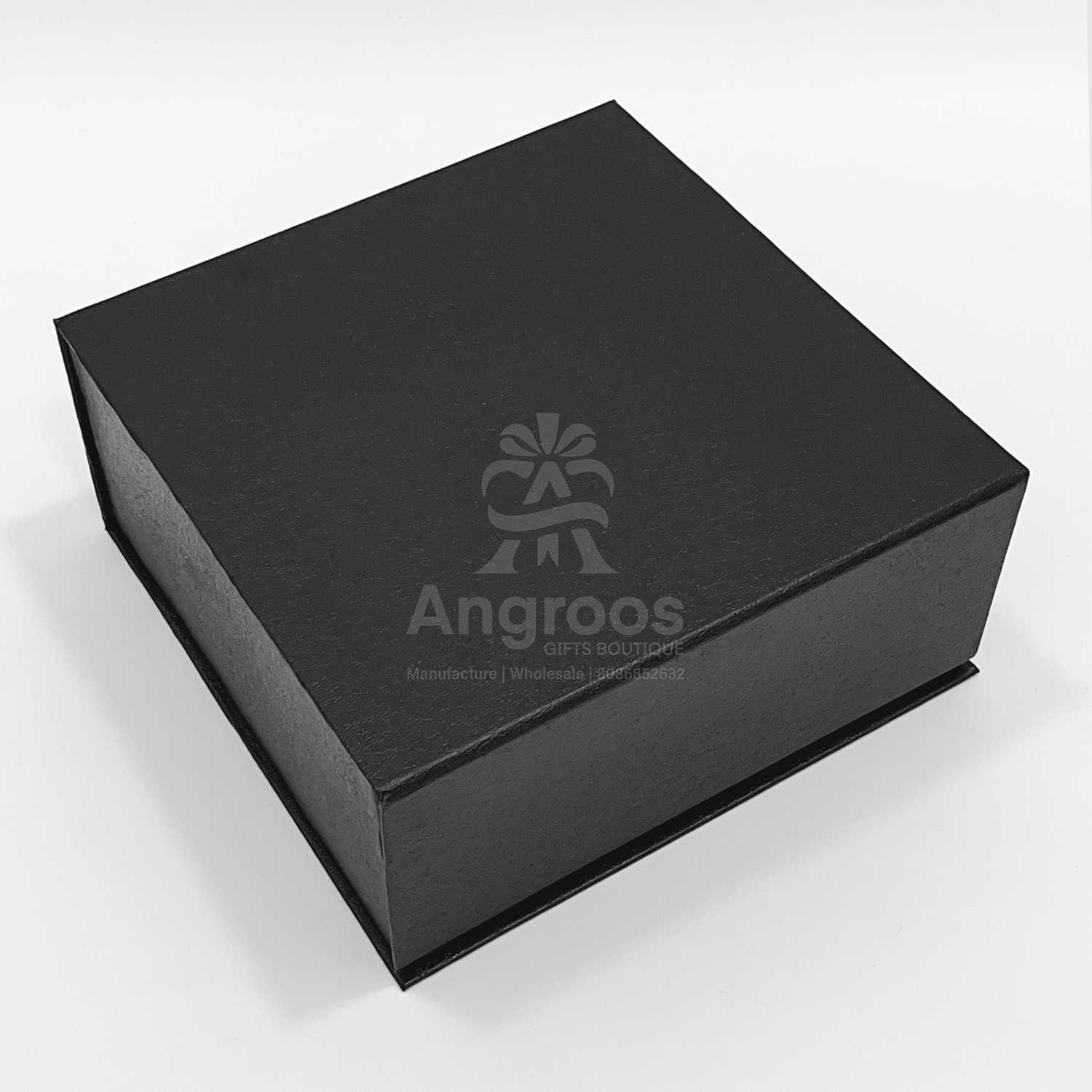 The black rigid gift box is made with a sturdy board structure designed for reliable and organized packing. Measuring 8 inches in length, 8 inches in width and 4 inches in height, this box offers enough space for arranging gift items neatly without crowding. The outer surface comes in a clean black color with a smooth finish, giving a neat and professional appearance for different gifting purposes. This rigid box is suitable for use in corporate gifting, festive hampers, wedding return gifts, sweet boxes, dry fruit boxes and customized gift packaging. The firm build helps protect the contents inside while maintaining a clean presentation during storage and delivery.