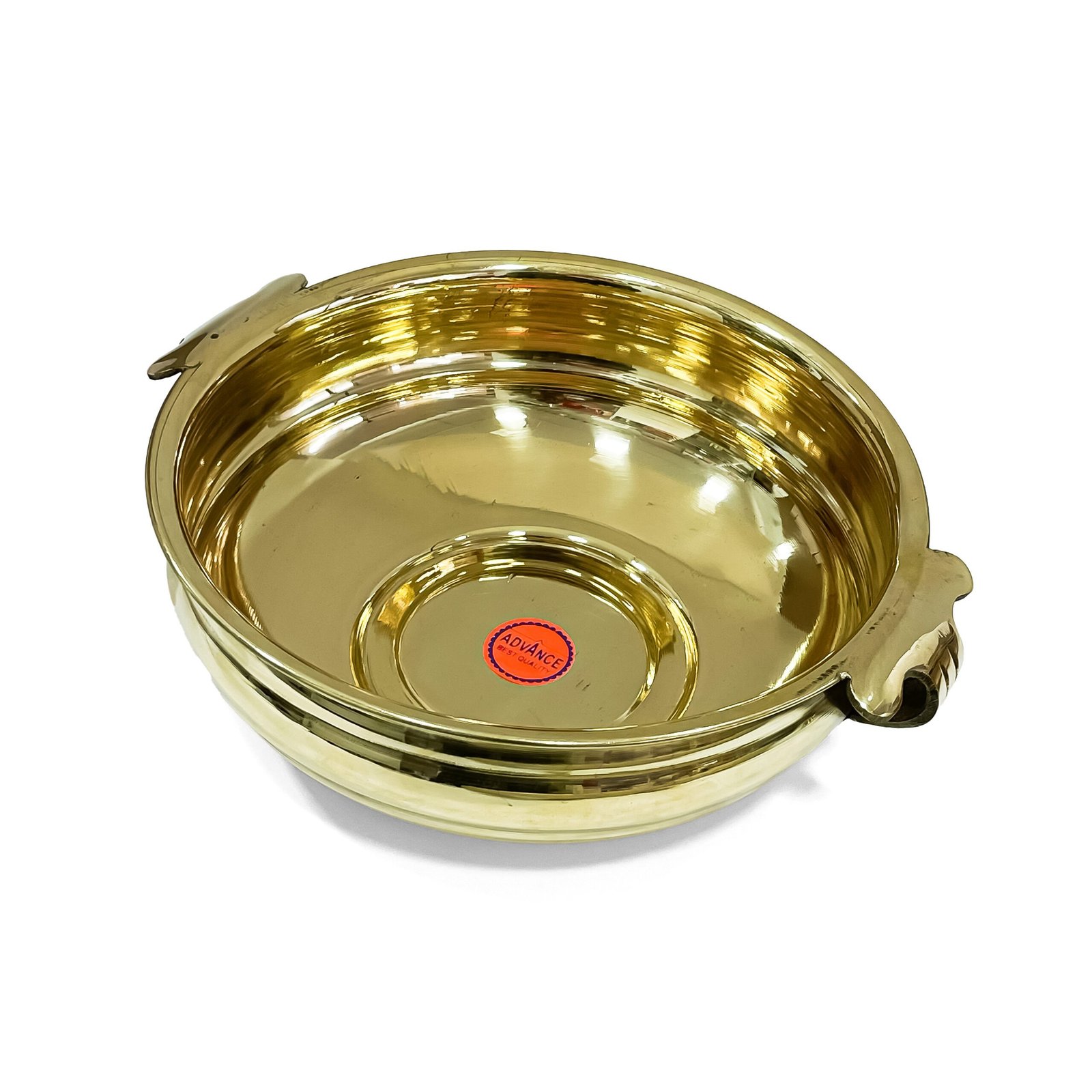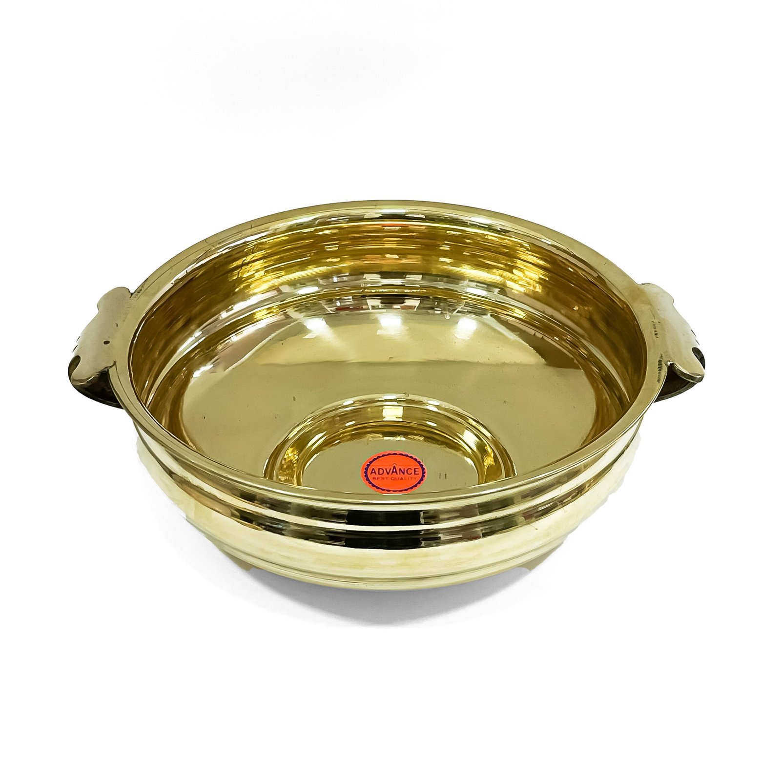 Introducing our exquisite Brass Uruli Bowl pot (Medium), specially crafted for Vishu Kani decorations and traditional setups. This round Uruli carries immense significance in Malayali culture, symbolizing prosperity, abundance, and auspiciousness. Its dimensions of a height of 3 inches, length of 13.5 inches, width of 11 inches, and weight of 1.011 kg make it a substantial centerpiece for your Vishu Kani display. Shop now!