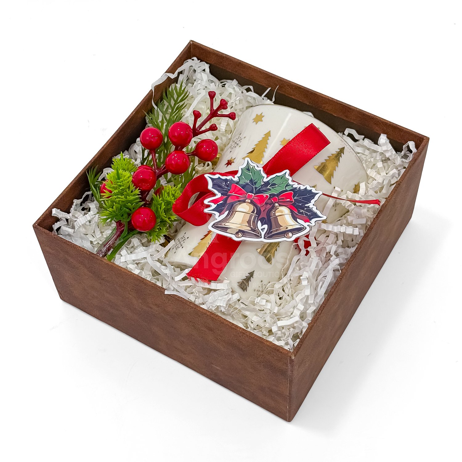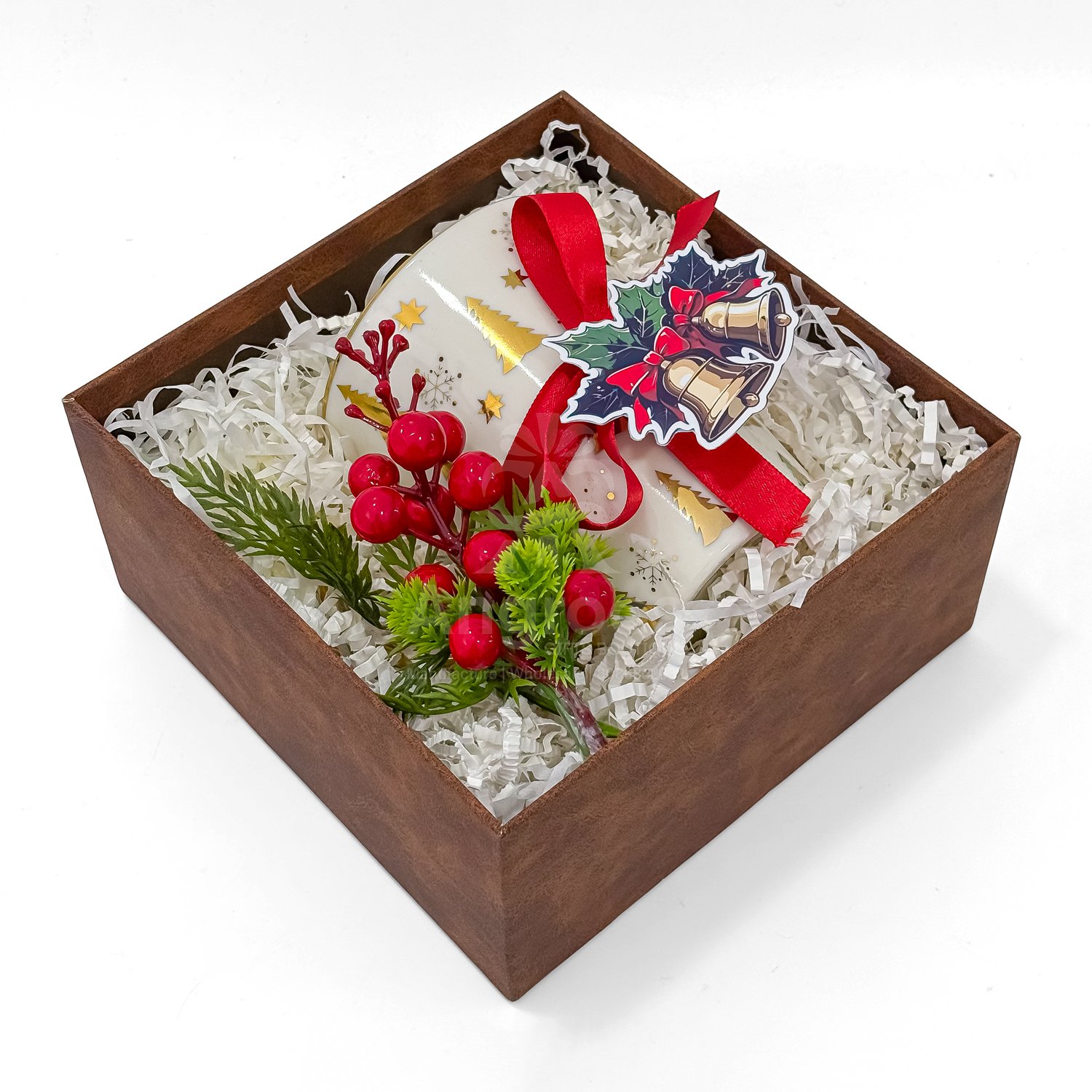 A festive Christmas gift box featuring a holiday mug, Christmas décor and a greeting card. A small and sweet option for Secret Santa and seasonal gifting.