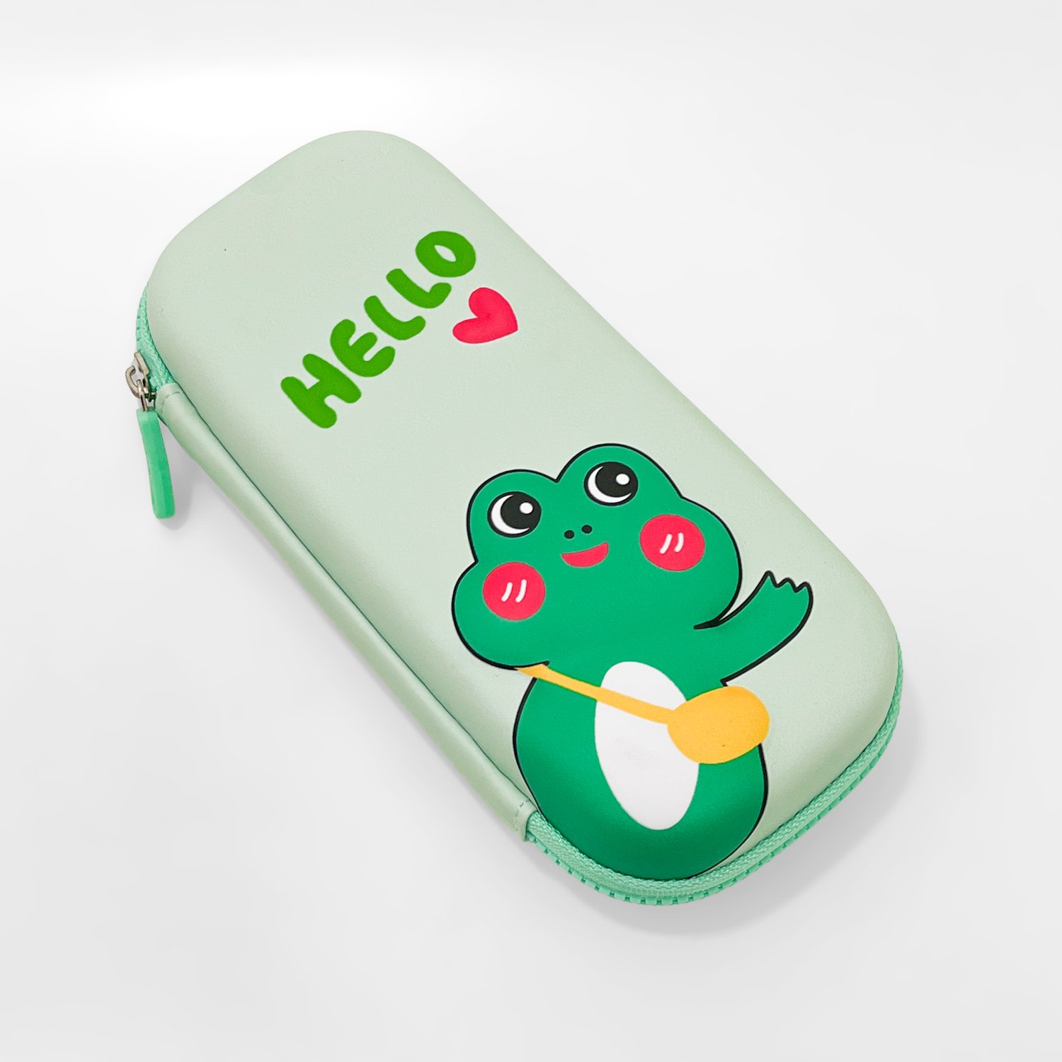 Bring joy to your child’s school routine with this charming frog-style pencil case. Made with a durable hard-shell exterior, it provides excellent protection for stationery items, preventing breakage and spills. Its spacious interior comfortably holds pencils, pens, scale, scissors, and other supplies while staying compact enough for easy carrying. The cheerful frog print and bright colors make it a favorite among kids. With a premium zipper and high-quality material, this pencil case is ideal for daily school use, gifting, and return gifts. Suitable for boys and girls, it adds both fun and functionality to their study essentials.