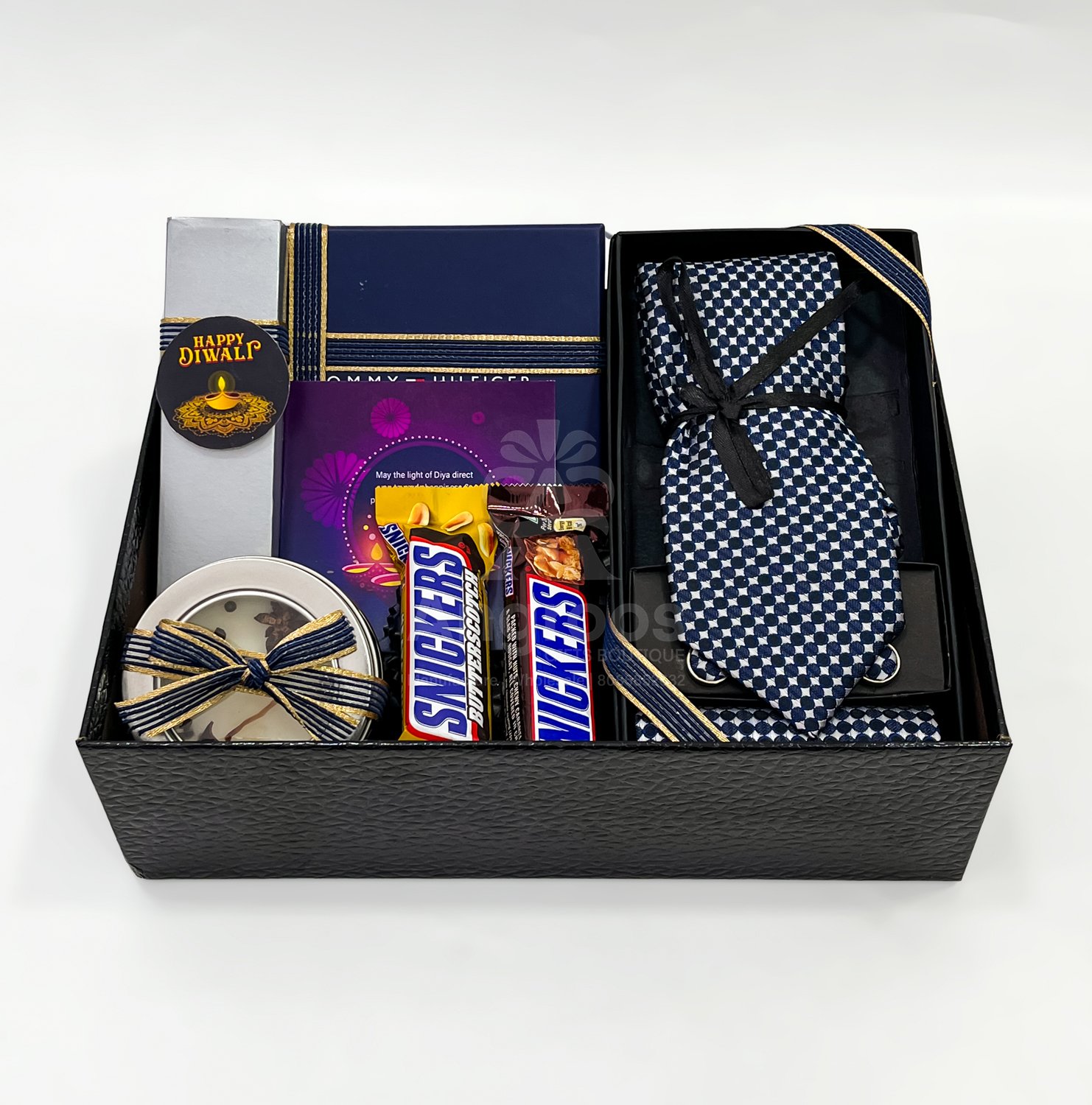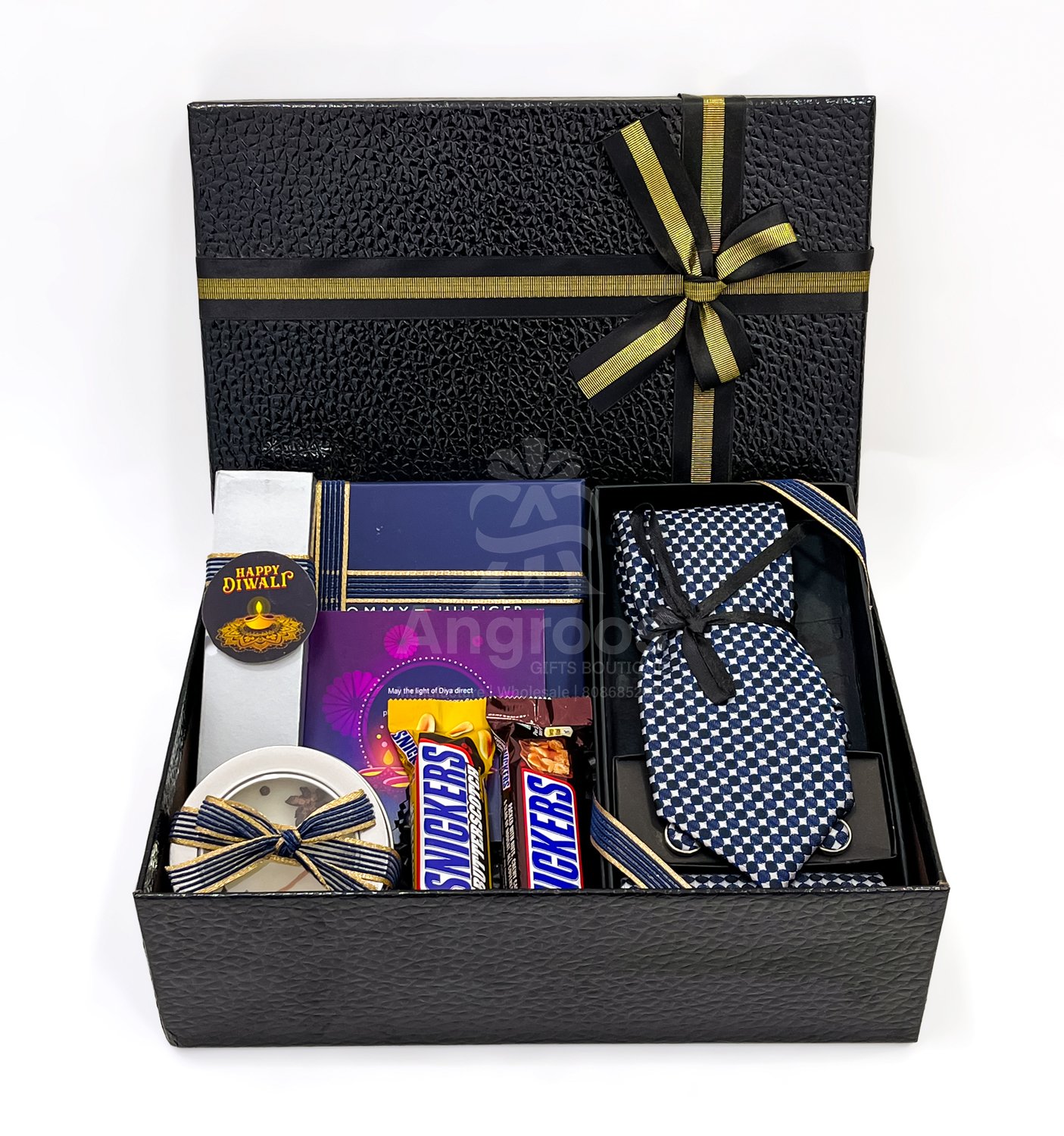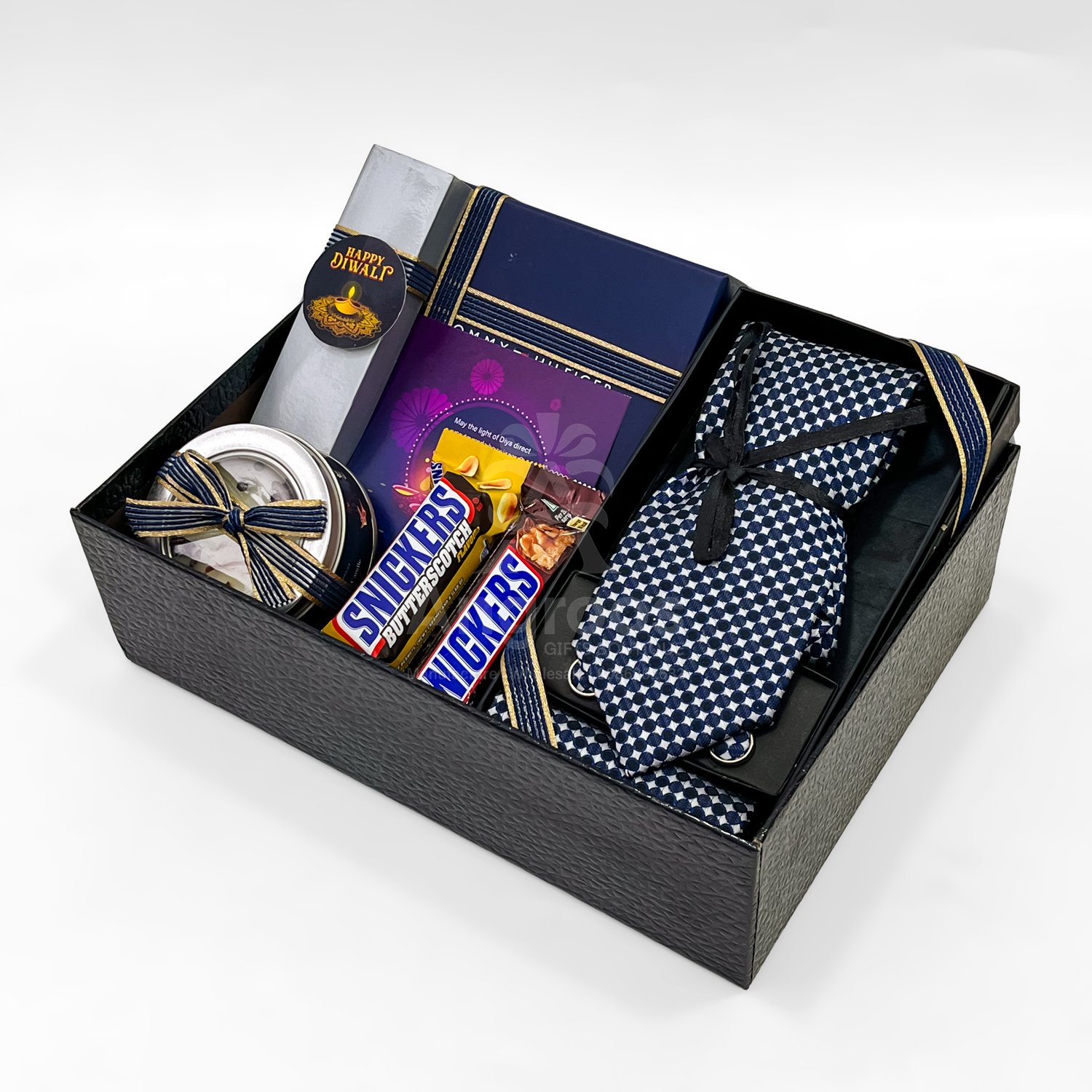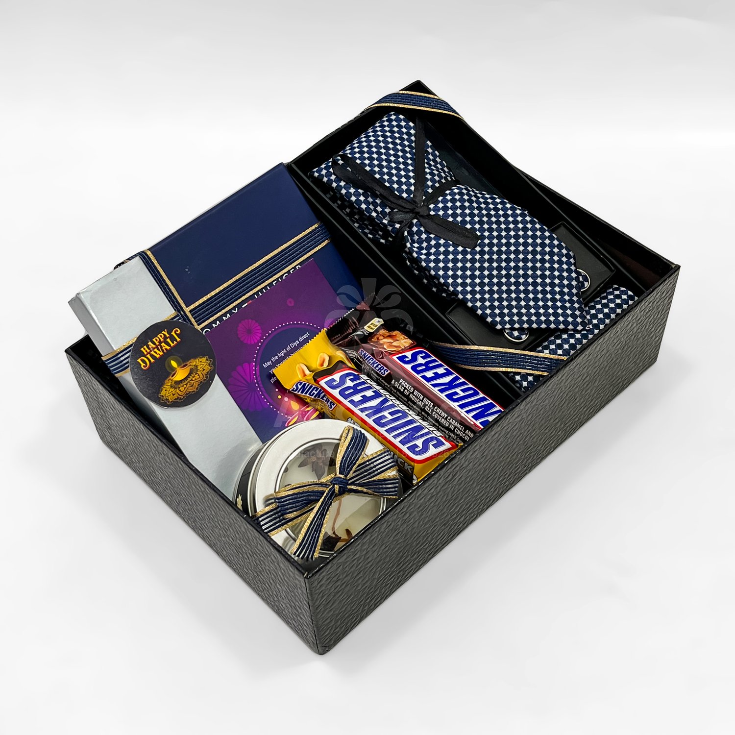 Diwali Gift Box for Men with Wallet, Tie, Pen, Candle & Chocolates