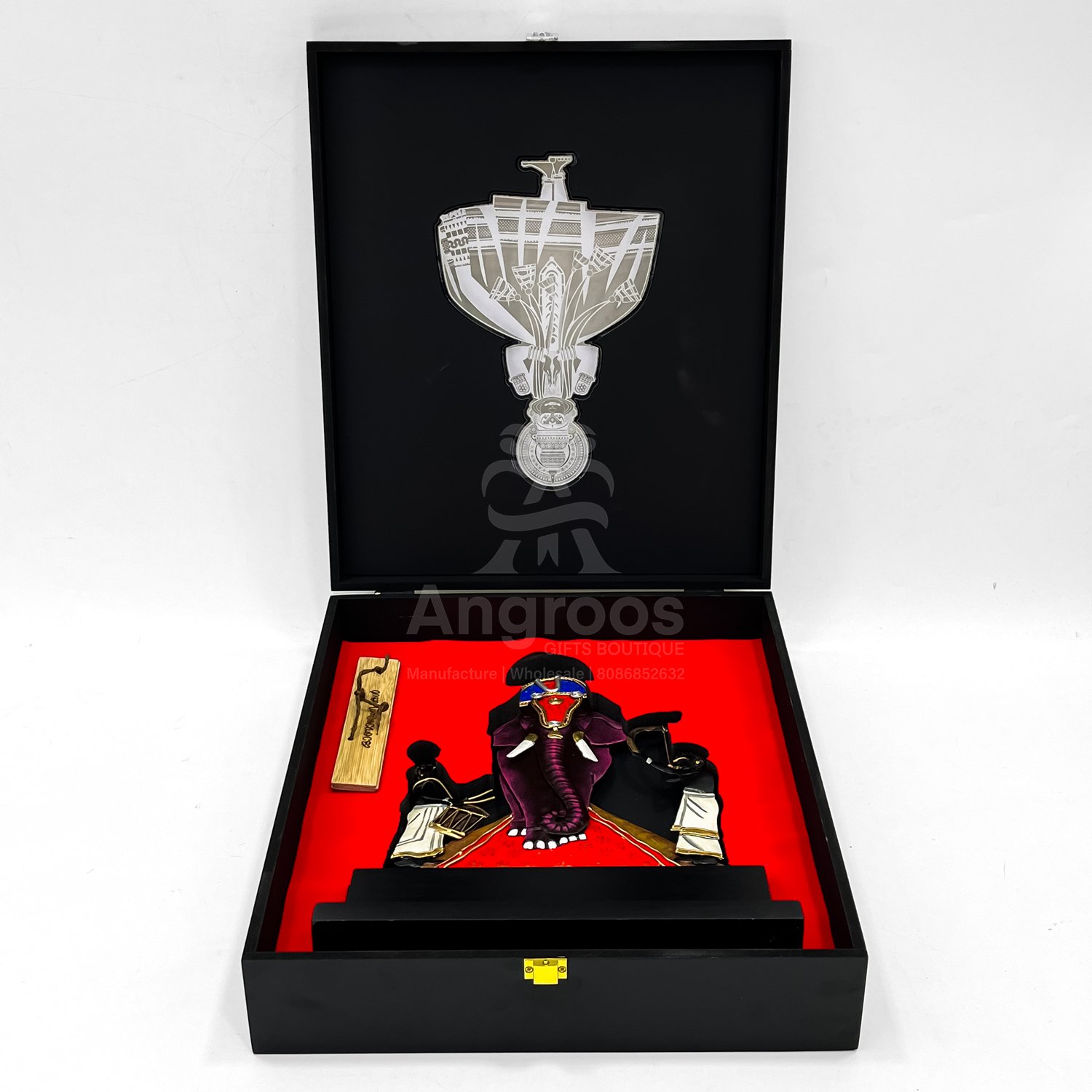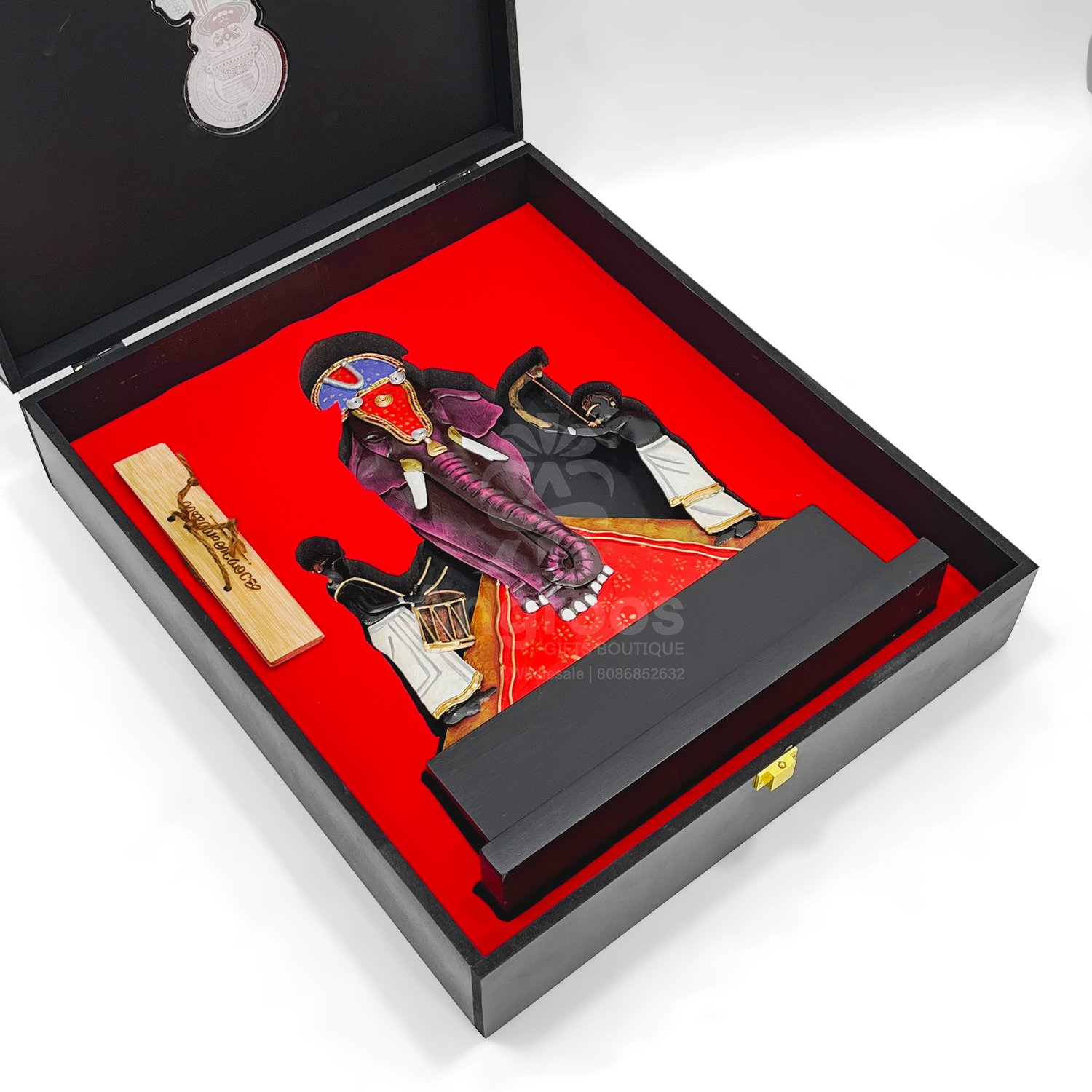 Elephant Pooram Onam Gift Box with Metal Memento & Ezhuthola