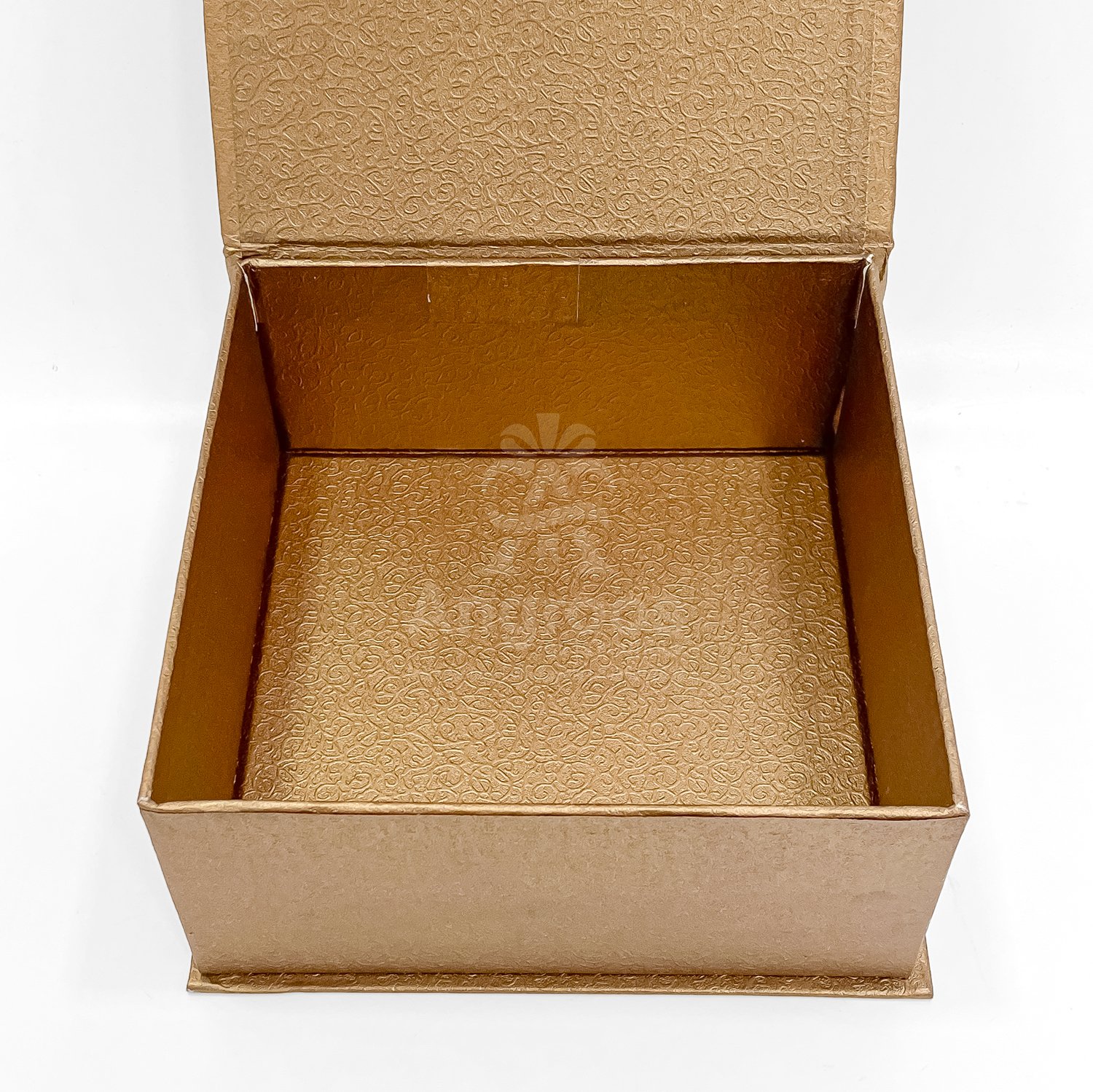 This rigid gift box comes in a gold color with a subtle textured finish that gives a clean and presentable look. Made with a sturdy rigid board structure, it holds its shape well and supports a variety of gift items such as chocolates, dry fruits, small hampers, souvenirs, or festive giveaways. The box measures 8 inches in length, 8 inches in width, and 4 inches in height, providing enough space for organized packing while remaining compact. With a weight of 366 grams, it is easy to handle and suitable for bulk packing, corporate gifting, festive occasions, and retail use. The gold color makes it suitable for celebrations, weddings, festivals, and special events without adding extra decoration.