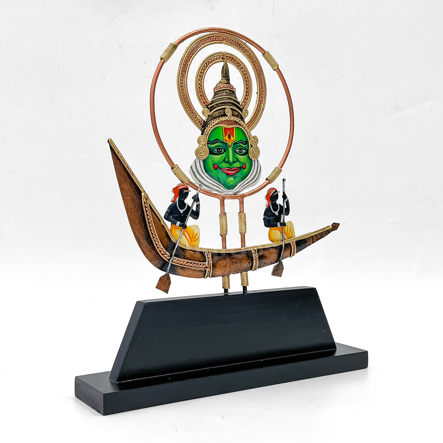 Handcrafted metal Kathakali Face with Boat Rowers – Kerala Cultural Decor