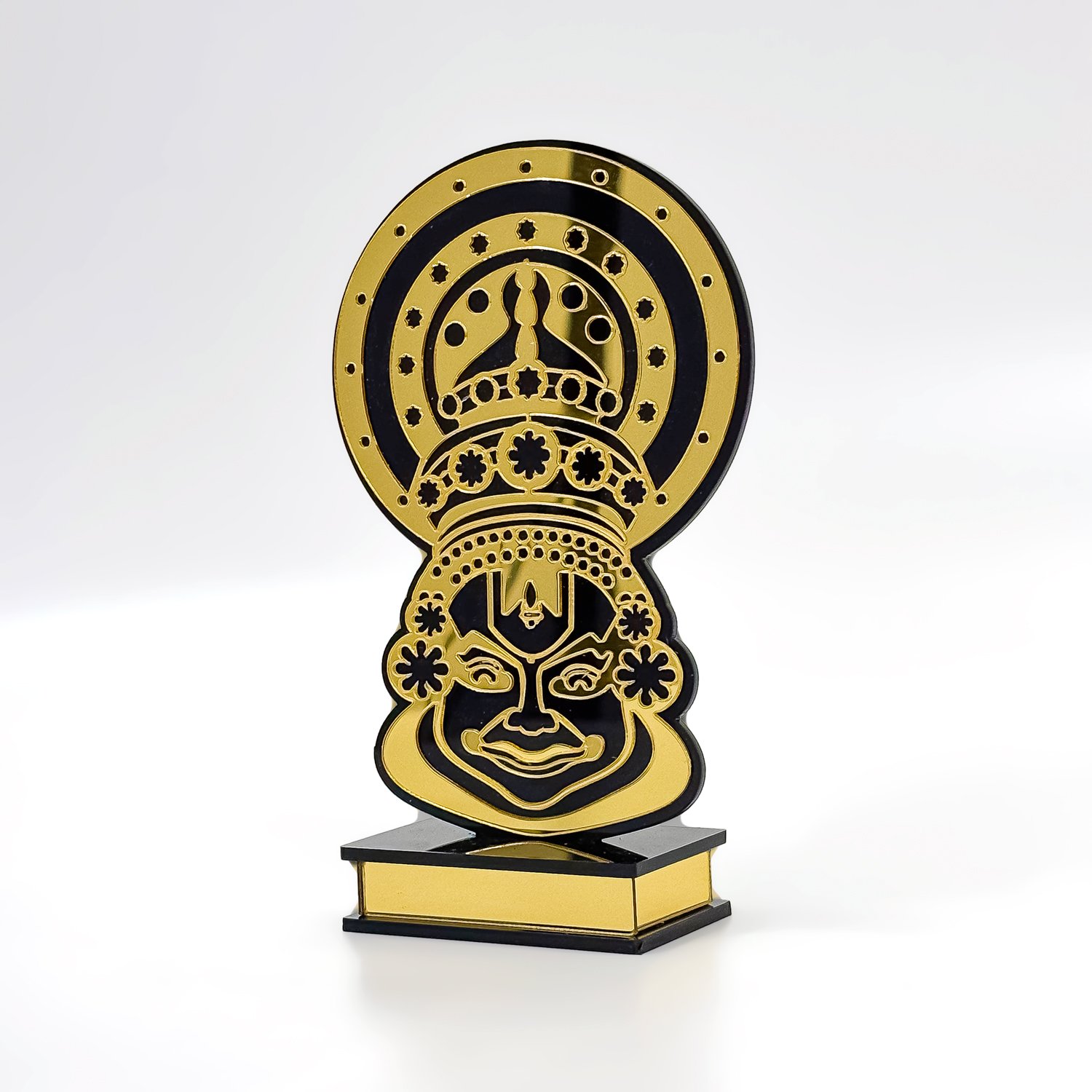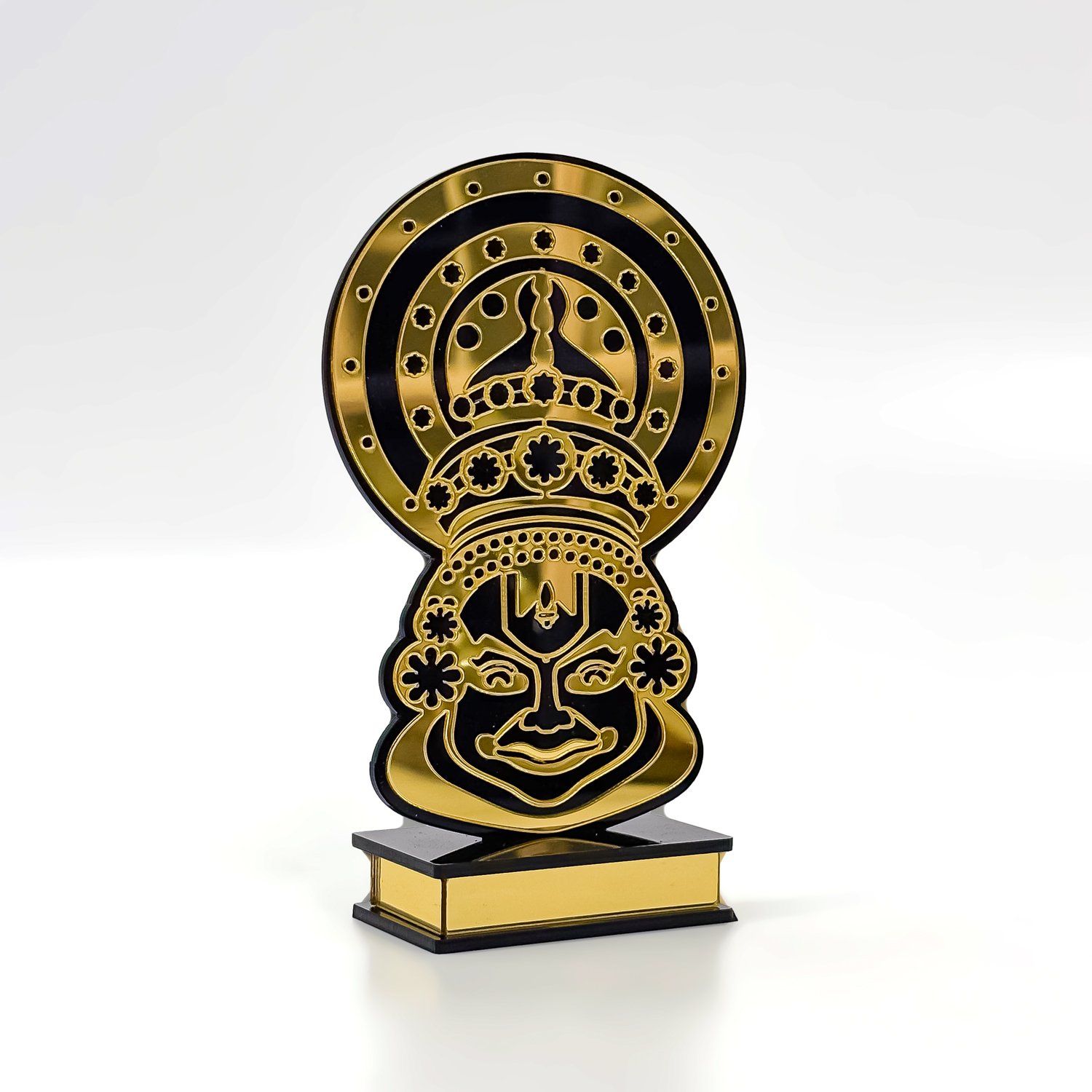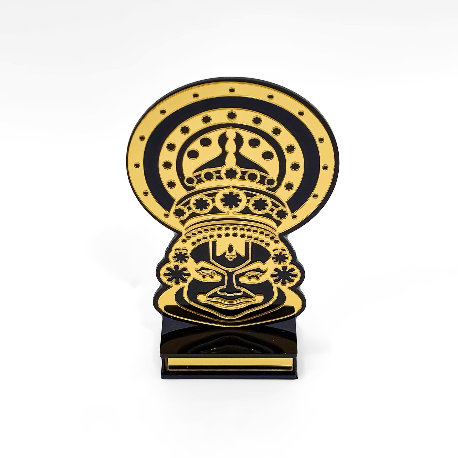 The Angroos Kathakali Face Showpiece is a timeless symbol of Kerala’s cultural grandeur and artistic excellence. Expertly designed in lustrous black and gold tones, this 6-inch masterpiece depicts the traditional Kathakali facial design with intricate craftsmanship and striking precision. Made from durable acrylic and mounted on a sturdy base, it stands elegantly on desks, showcases, or wall shelves. Weighing just 46 g, it’s lightweight yet visually captivating — a perfect décor accent or gift for art lovers and travelers. Whether displayed at home, gifted as a Kerala souvenir, or included in corporate hampers, this Angroos Kathakali showpiece radiates tradition, artistry, and cultural pride.
