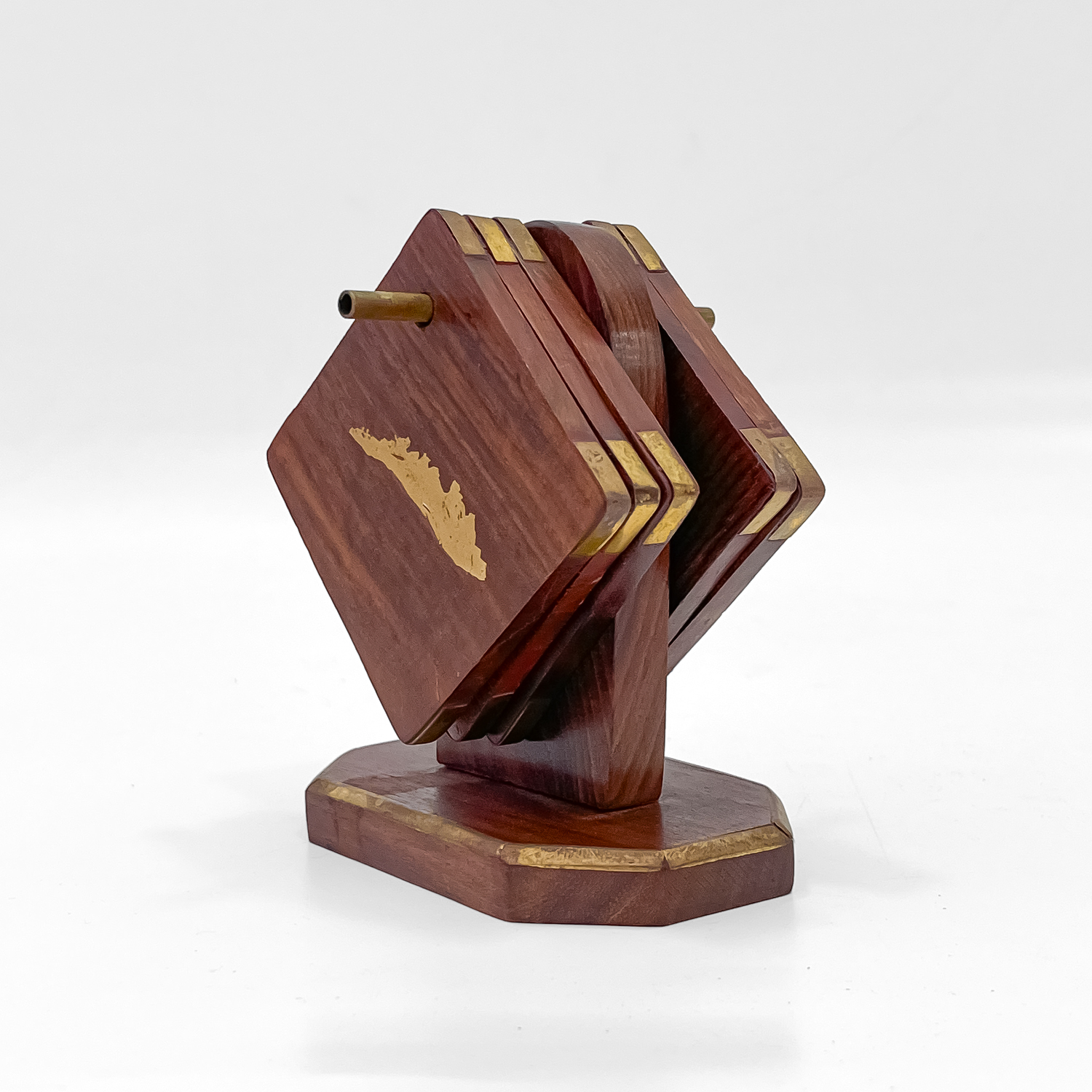 A tribute to Kerala’s heritage, this handcrafted wooden coaster set features a stunning brass inlay of the Kerala state map. Ideal for gifting, showcasing tradition with everyday utility.