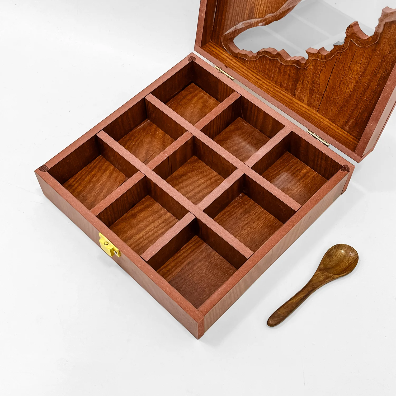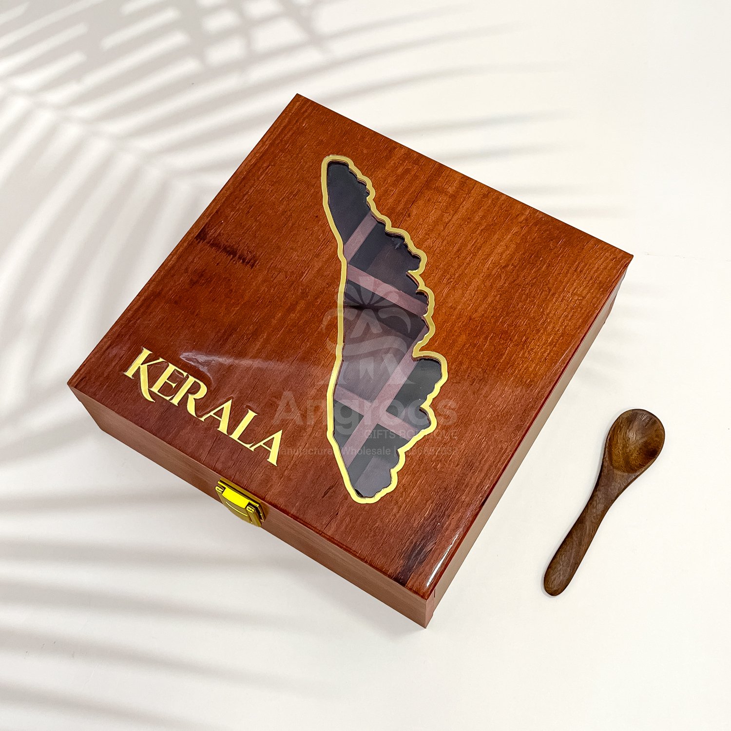 Kerala Map Resin Art Wooden Spice Box – Premium Handcrafted Gift