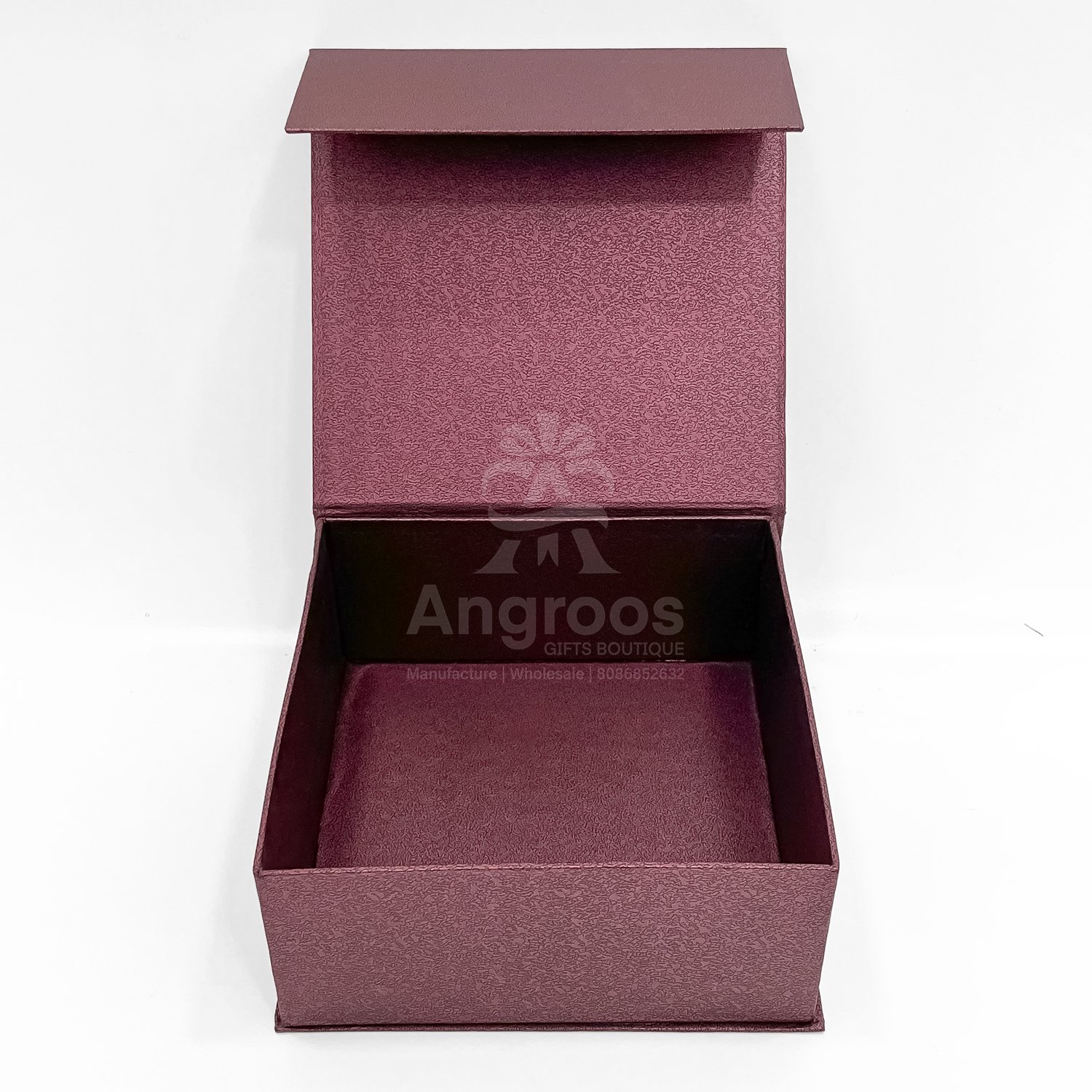 This maroon rigid box is a sturdy square gift box designed for safe and neat packaging of gift items. Made with strong board material, it features a textured maroon finish that suits festive gifting, corporate hampers, and product packaging. The box size is 8 x 8 inches with a height of 4 inches, offering enough space for chocolates, accessories, or small gift sets.