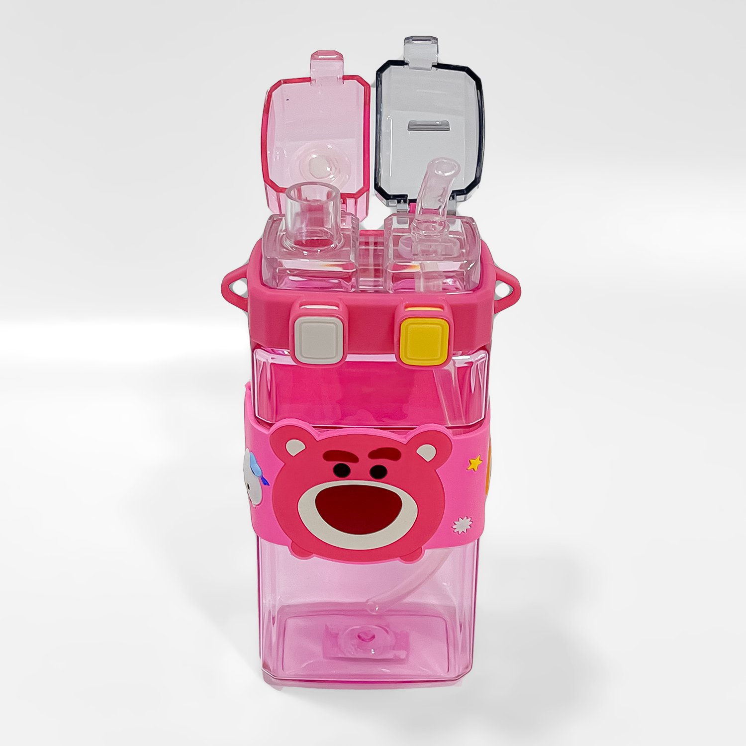 Add charm to hydration with the Angroos Pink Bear Water Bottle. This 8-inch lightweight sipper comes with a playful bear design, dual nozzles, and an adjustable strap — perfect for kids on the go.