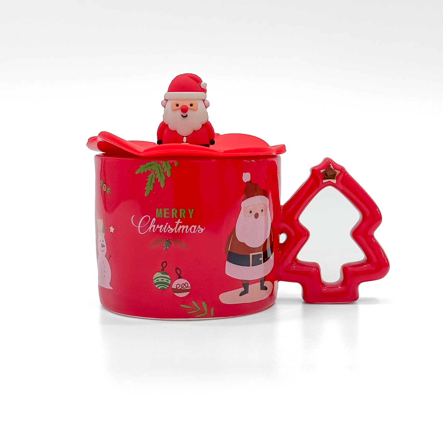 Original price was: ₹920.₹800Current price is: ₹800.Red Christmas Mug with Santa Lid & Tree Handle