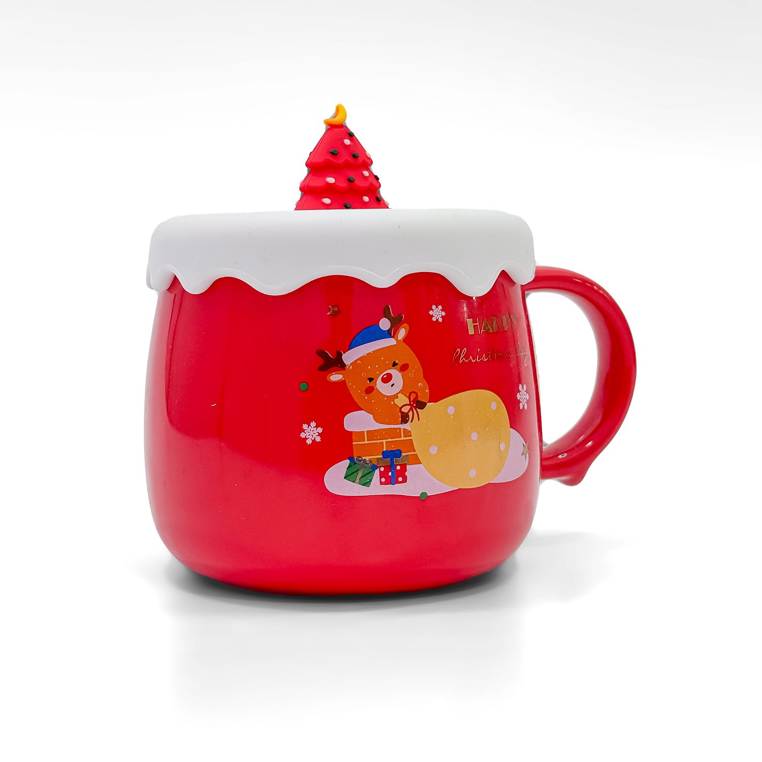 Original price was: ₹920.₹800Current price is: ₹800.Red Reindeer Christmas Mug with Tree Lid – Festive Ceramic Coffee Cup