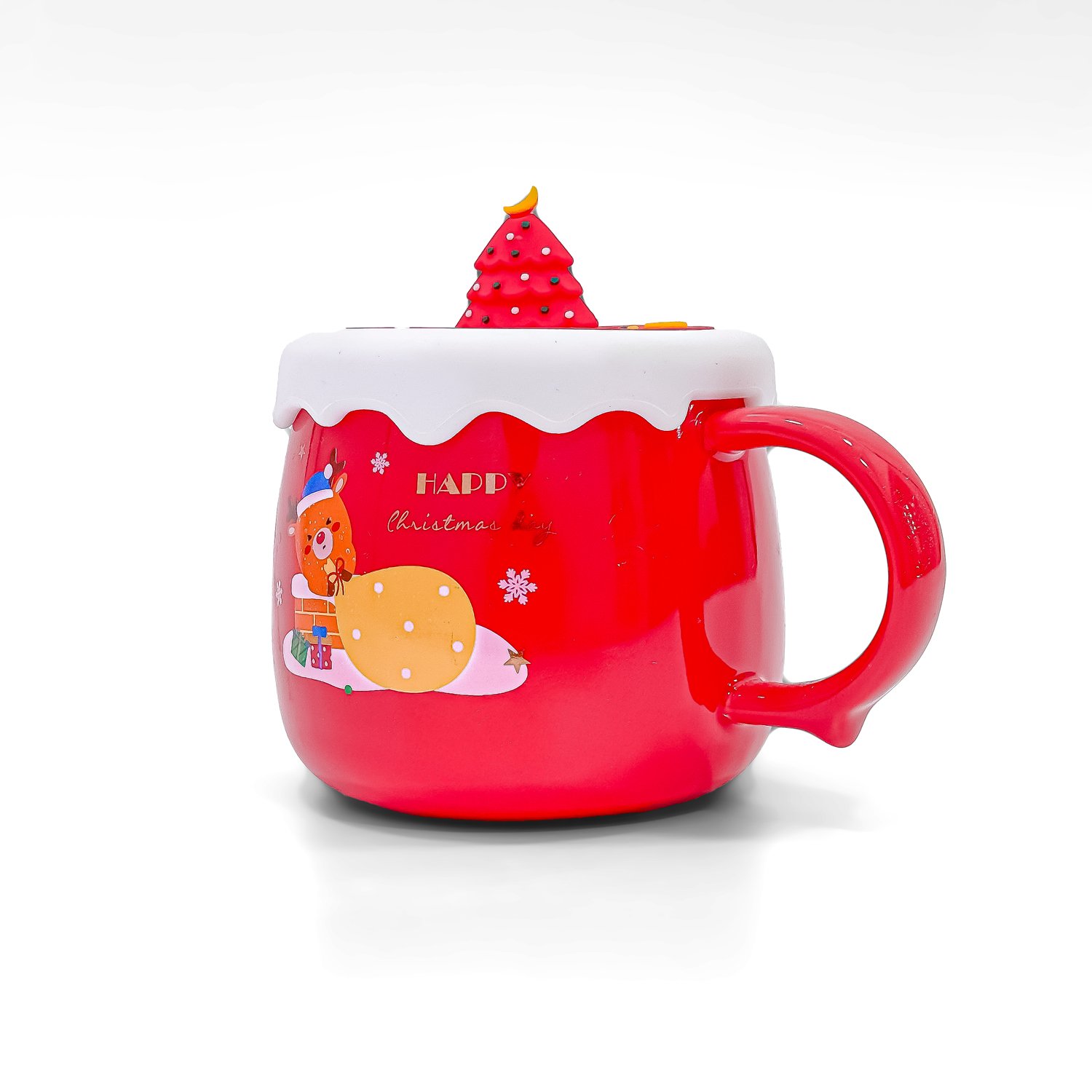 Celebrate the joy of Christmas with the Angroos Red Reindeer Mug. This festive ceramic cup features a cute reindeer print, snowy white rim, and a Christmas tree lid — perfect for sipping coffee, cocoa, or gifting this holiday season.