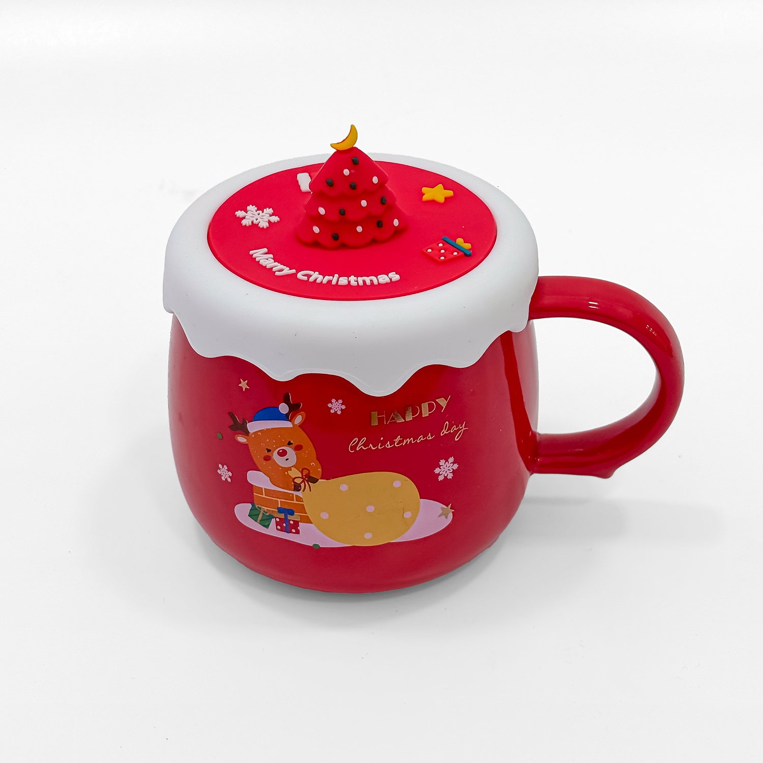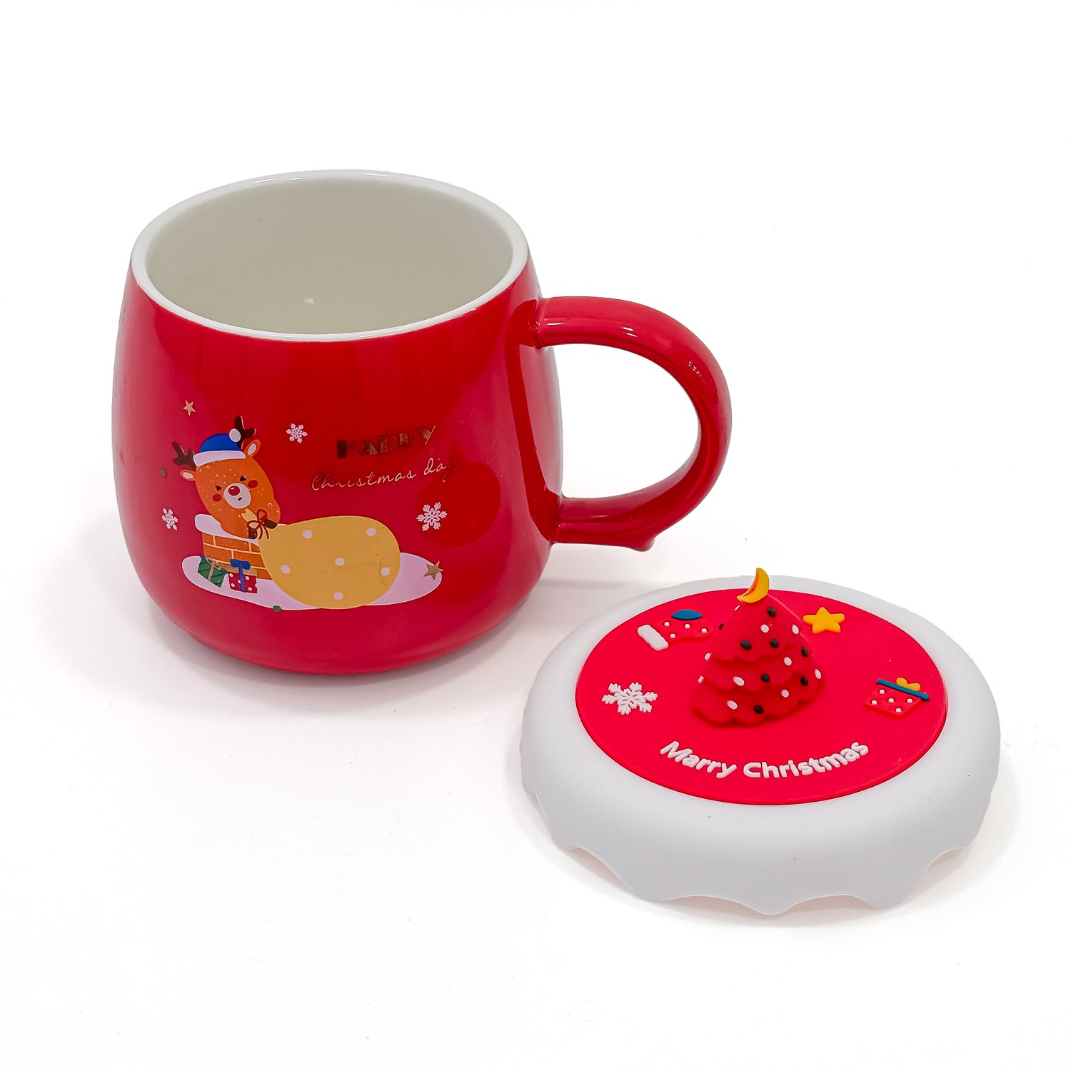 Bring the warmth of the holidays home with the Angroos Red Reindeer Christmas Mug — a perfect mix of charm, color, and celebration. Crafted from high-quality ceramic, this 4.5-inch mug features a cheerful reindeer illustration surrounded by snowflakes and festive details. The snowy white rim and bright red body capture the essence of Christmas, while the lid topped with a mini Christmas tree keeps your drinks warm and adds a fun decorative touch. Measuring 5.5 inches in length and weighing 388g, this mug is ideal for hot chocolate, coffee, or tea. Whether used for personal enjoyment, home décor, or gifting, the Angroos Reindeer Mug adds festive joy to every cup.