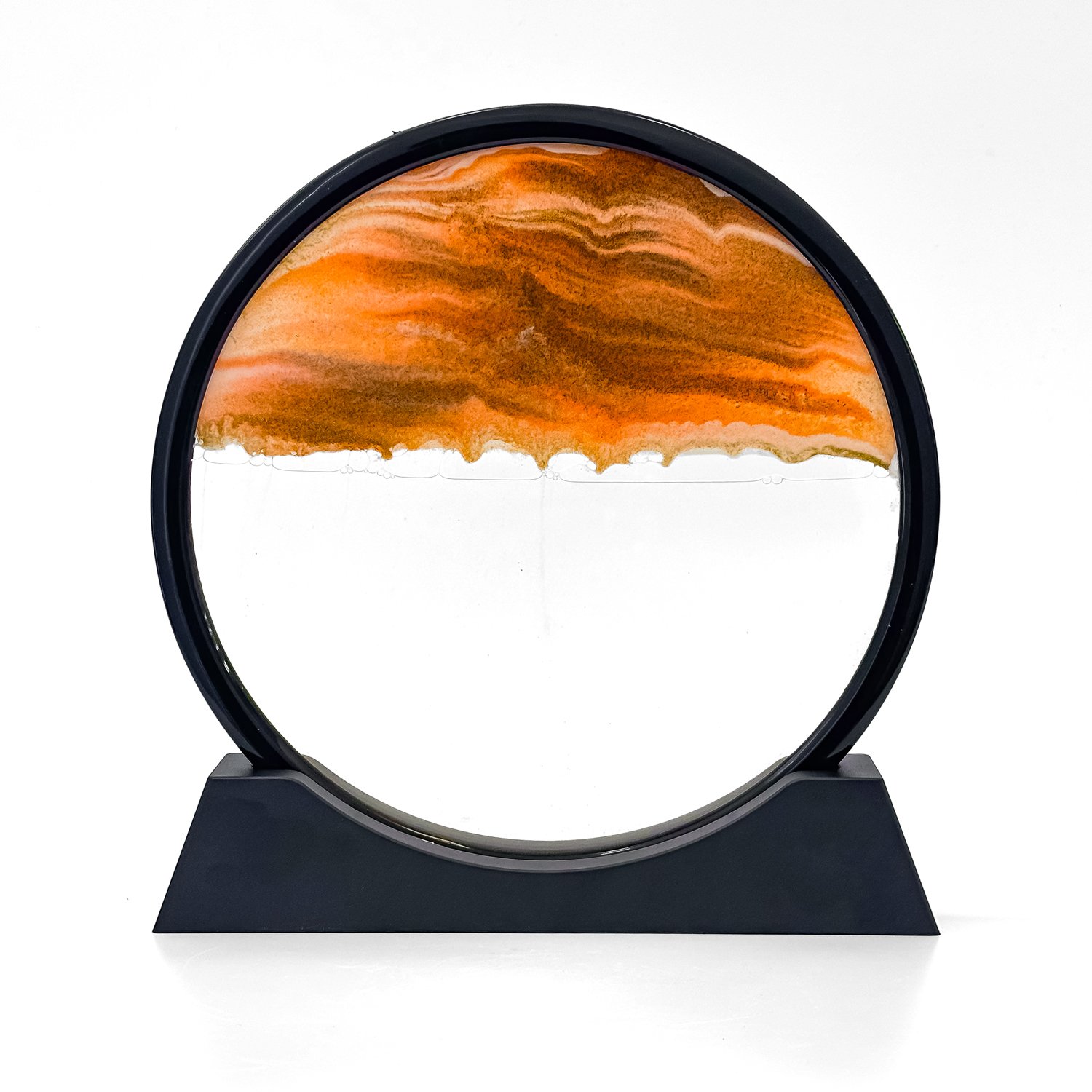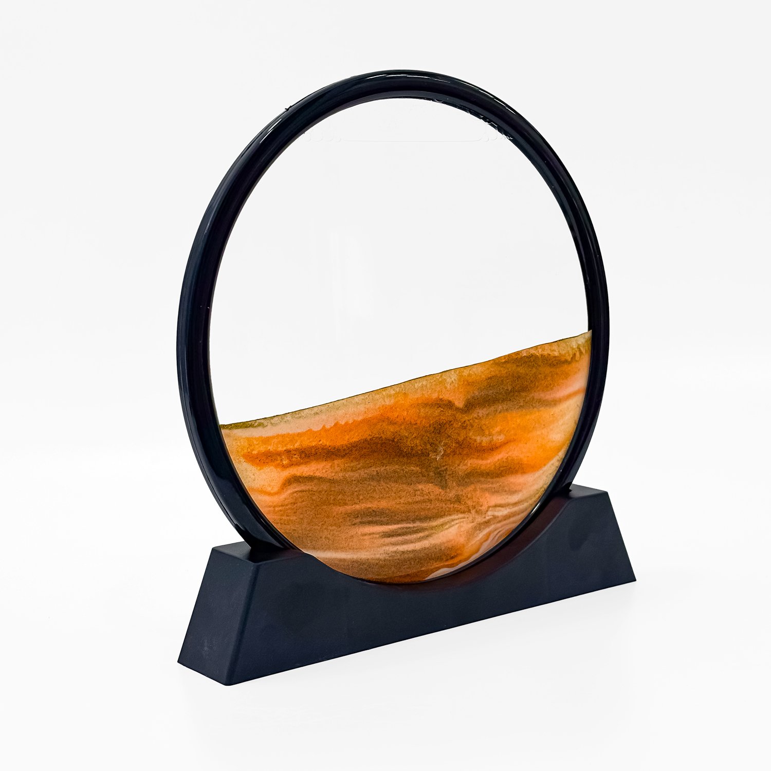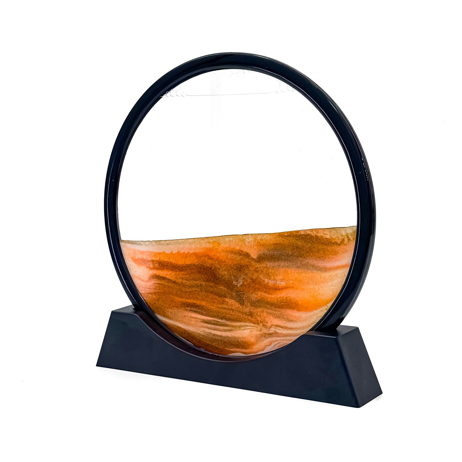 Add a mesmerizing touch to your décor with the Angroos Rotating Sand Art Frame. This elegant 10.5-inch round glass piece creates flowing sand patterns that evoke calmness, making it perfect for desks, homes, and gifts.