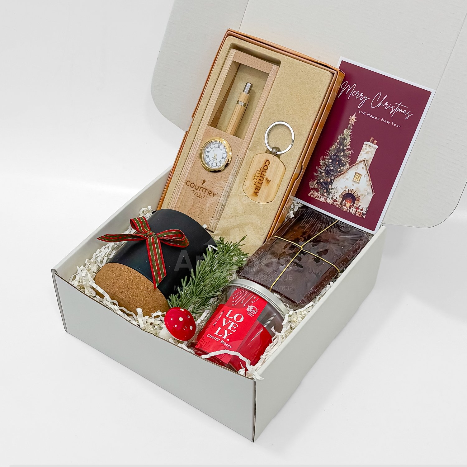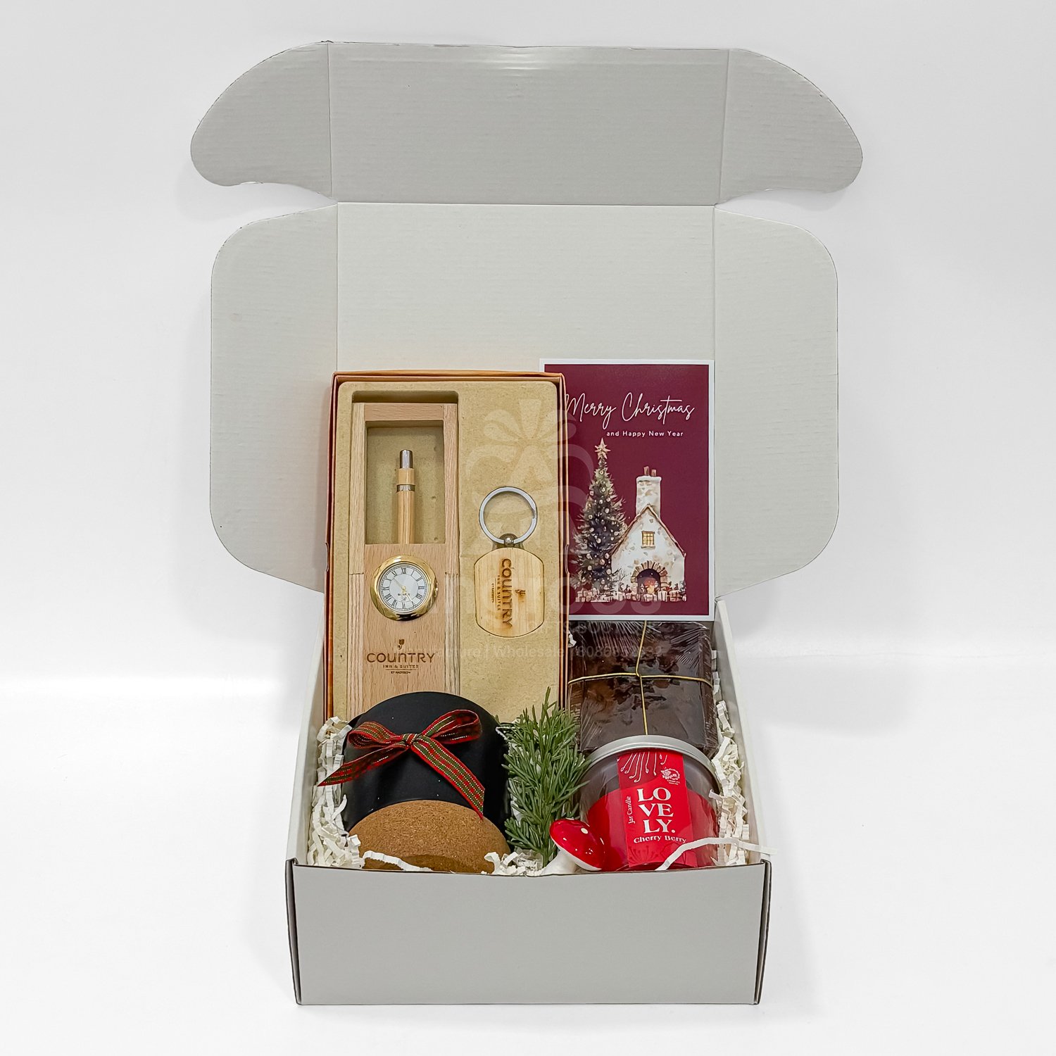 This Xmas office gift box is designed as an affordable and thoughtful gifting option for employees, colleagues and clients. It includes a 2026 diary with pen, Christmas mug, plum cake, bubble candle, greeting card and festive décor items.